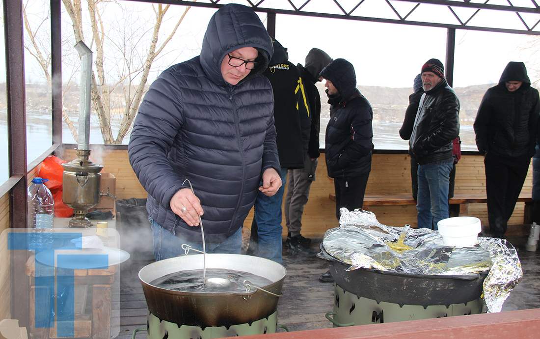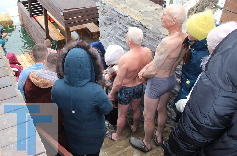 В месте купания заранее провели большую подготовительную работу: обследовали дно на наличие опасных предметов, выполнили из дерева специальную конструкцию, которую погрузили в водоем. Ступени оборудовали поручнем и постелили противоскользящий коврик, чтобы избежать падений. Были оборудованы теплые раздевалки, на берегу разожгли большой костер. Варился вкусный и ароматный кулеш, которым мог согреться каждый участник крещенского купания. Мастер своего дела сварил такое наваристое угощение, что все диву давались, настолько вкусным был кулеш. В дополнение к угощению всем предлагали ароматный чай. Перед массовым купанием на берегу провел праздничную отец Дмитрий, настоятель Свято-Благовещенского храма. После соблюдения всех обрядов любой желающий мог окунуться в купель.