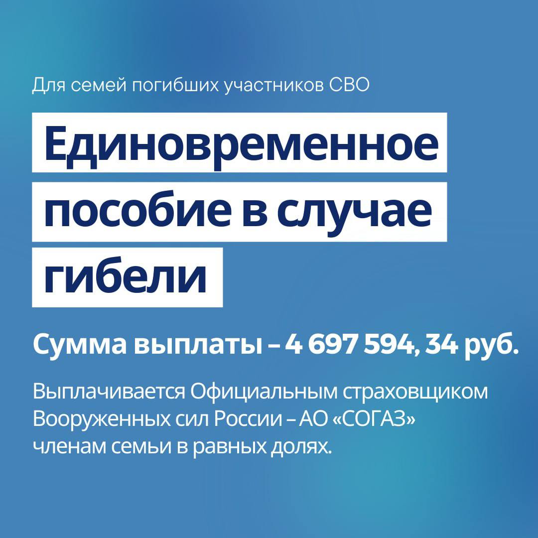 Государство предусматривает для семей погибших участников СВО ряд мер поддержки, при этом в списке есть как единовременные выплаты, так и ежемесячные.