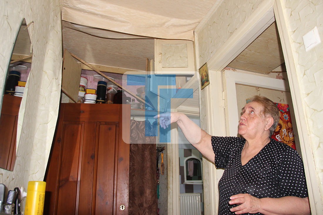 В этот дом семья Веры Николаевны вселилась в июле 1977 года. Спустя два года протекла крыша. Воды было так много, что ее маленький сын свободно играл в кораблики в тазу, куда стекала с потолка дождевая вода. Жители тогда написали письмо с жалобой и отправили его в Москву. Приезжала комиссия и проводила проверку. Тогда коммунальные службы провели капитальный ремонт крыши. Долгое время – почти 30 лет – проблем совсем не возникало. В 2010 году начали протекать вентиляционные каналы. Благодаря настойчивости жителей, ремонт провели в короткий срок. И вот следующая протечка дала о себе знать в ноябре прошлого года. Пострадал потолок в коридоре, ванной, кухне. Жители поспешили обратиться в ЖЭК, который находится в квартале Шахтер. Там их выслушали, прислали людей, которые натянули на чердаке полиэтилен, чтобы уменьшить течь. Сказали, что дом поставили в очередь на ремонт кровли. Ориентировочно на весну, когда наладится погода. В декабре проблема усугубилась. После обращения в ЖЭК пришли рабочие, которые расчистили снег на крыше. Тогда же людям пообещали, что ремонт проведут у них в первую очередь. Но весной их очередь сдвинули. Теперь ремонт запланирован на начало осени. Причина вполне понятна – почти 100 таких же заявок во всем городе на одного кровельщика.