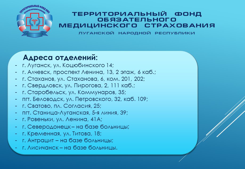 Напоминаем адреса Терфондов ОМС в ЛНР: