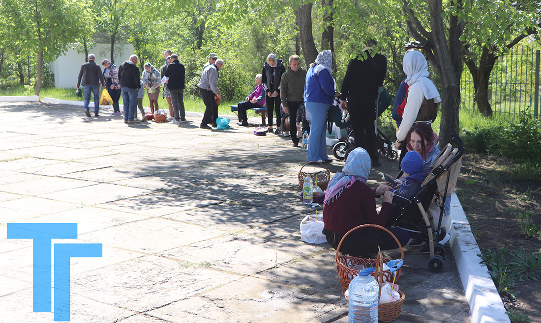 Возле строящегося храма Воскресения Христова на площади Молодой гвардии к этому времени завершал освящение продуктов Вячеслав, служитель церкви Рождества Христова. Он терпеливо ждал тех жителей Краснодона, которые не могли прийти к храму раньше.