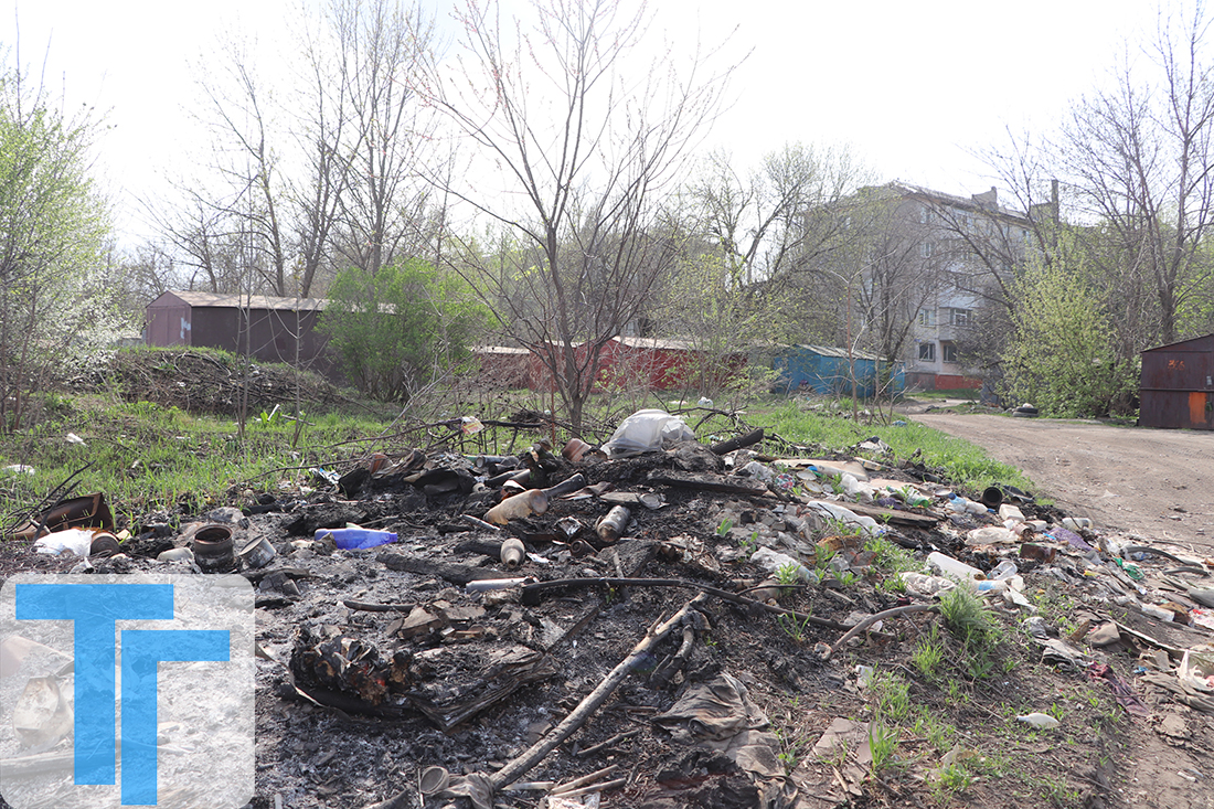 Остатки сожженного мусора на окраине Молодогвардейска