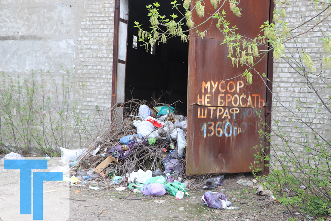 Еще одна крупная свалка находится напротив закрытой почты в квартале Баракова, рядом с детским садом № 40 «Веснушка». На земле рядом с заброшенным гаражом можно найти толстый слой пепла – ктото сжег скопившуюся здесь гору мусора, но сверху на остатки внушительного костра уже набросали новые пакеты с бытовыми отходами. Другая большая гора мусора находится в самом гараже – в него сгребли сухие ветки вперемешку с пакетами. На ржавых воротах гаража ярко выделяется надпись «Мусор не бросать, штраф» – очевидно, она никого не пугает.