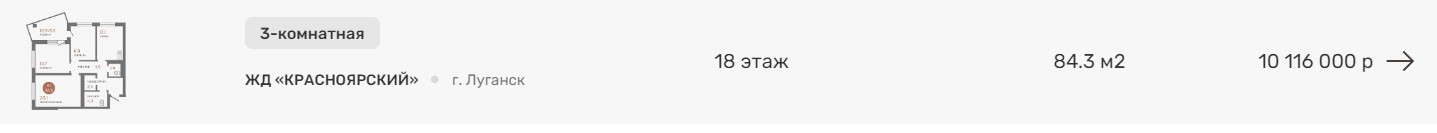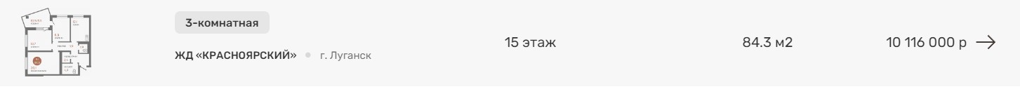 В IV квартале 2026 года в Луганске планируют открыть ЖД «Красноярский» – 18-этажный жилой дом на 117 квартир. Согласно проекту, дом будет окружён закрытой территорией, обустроен парковочными местами. На первых этажах располагаются нежилые помещения, также в ЖД «Красноярский» предусмотрена подземная парковка.