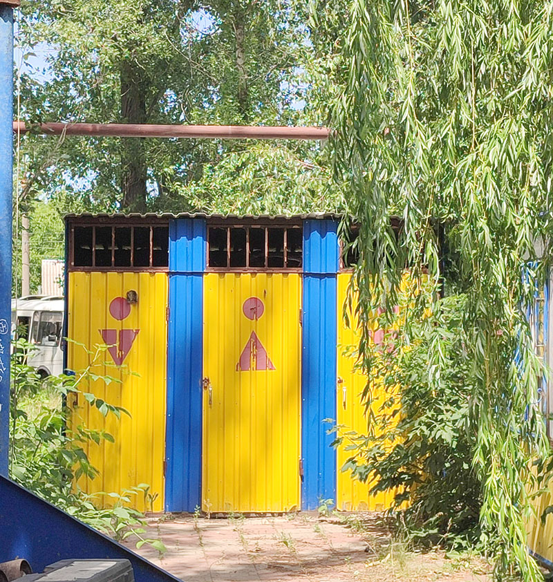 Вторая уборная тоже в районе рынка. Старое здание с ржавыми железными дверями. Вход в него завешен грязным тюлем. Мимо не пройдете – запах стоит такой, что и за версту понятно, в каком направлении двигаться. Несмотря на наличие уборщицы, в помещении грязно. «Конфиденциальность» вам не обеспечат – кабинок там просто нет, а единственным разделителем служит фанера. Плата за вход 10 рублей, режим работы с 6.00 до 12.30.