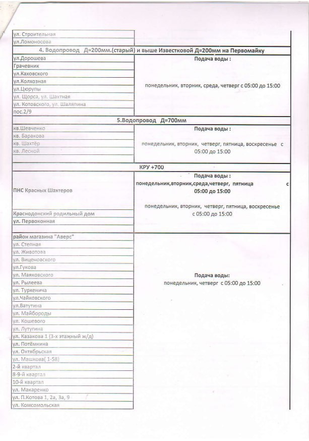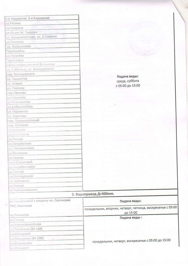 График подачи воды: