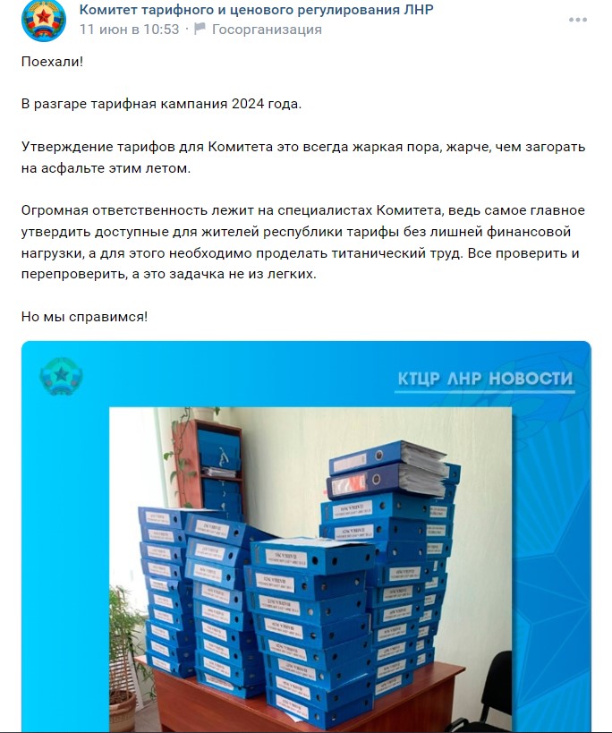 Комитет тарифного и ценового регулирования ЛНР 11 июня в своих социальных сетях сообщил, что специалисты взялись за изменение тарифов. По состоянию на 19 июня всё ещё остаётся неизвестным то, как изменятся тарифы на коммунальные услуги в Республике с июля.