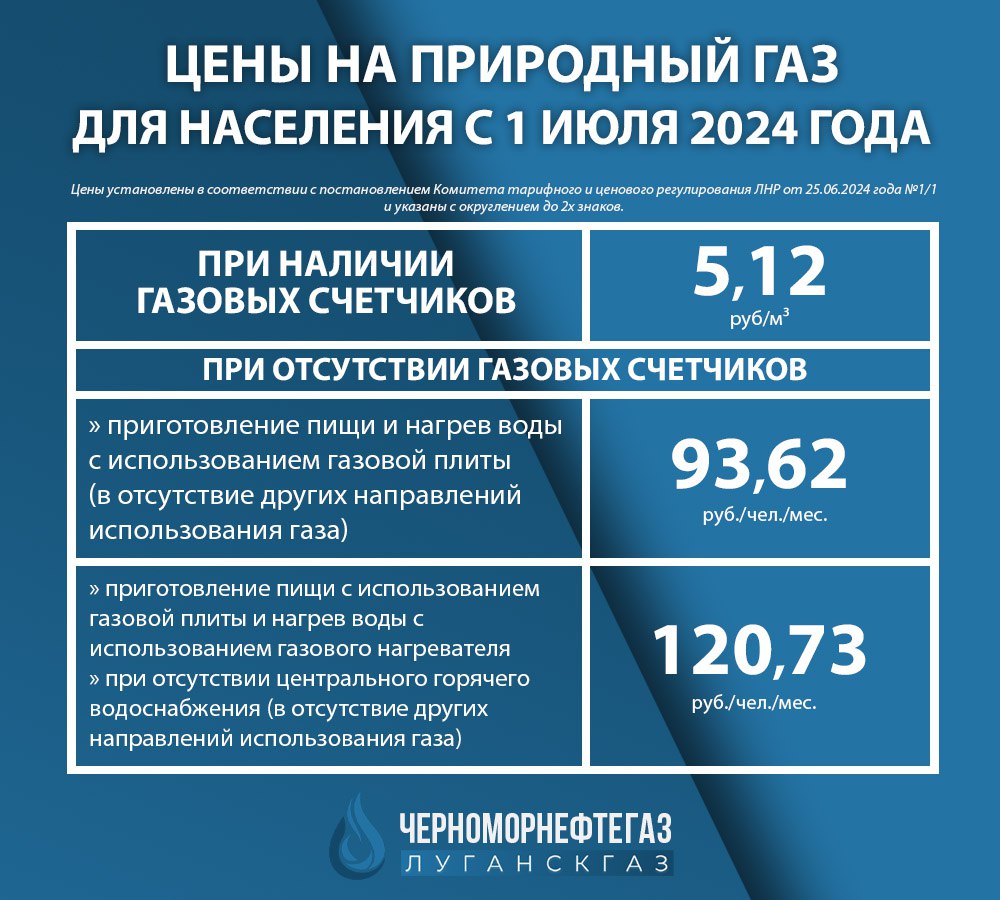 Как сообщает «Луганскгаз» (филиал ООО “Черноморнефтегаз“), новые тарифы для населения приведены в соответствие с законодательством Российской Федерации и теперь не зависят от годовых объёмов потребления, существовавших при старых расценках.