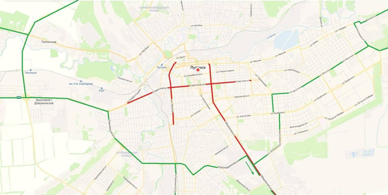 В случае движения с направления (в направлении) г. Счастье рекомендуется использовать объездную дорогу через пос. Тепличный Н-21, далее по ул. Победы на ул. А. Линева (в направлении Лутугино, Краснодона, Станицы-Луганской) или ул. Артемовскую (в направлении Алчевска).