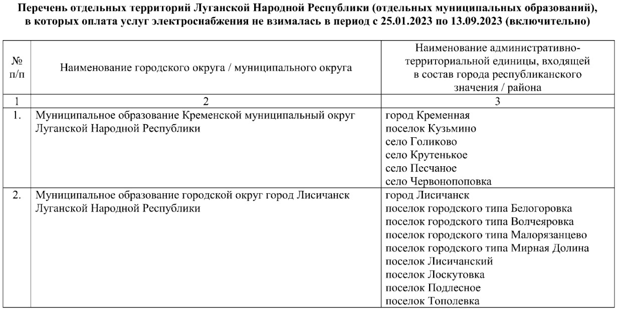 ВАЖНАЯ ИНФОРМАЦИЯ! Жителям некоторых населённых пунктов ЛНР спишут платежи за свет и газ за 8 месяцев 2023 года (список)