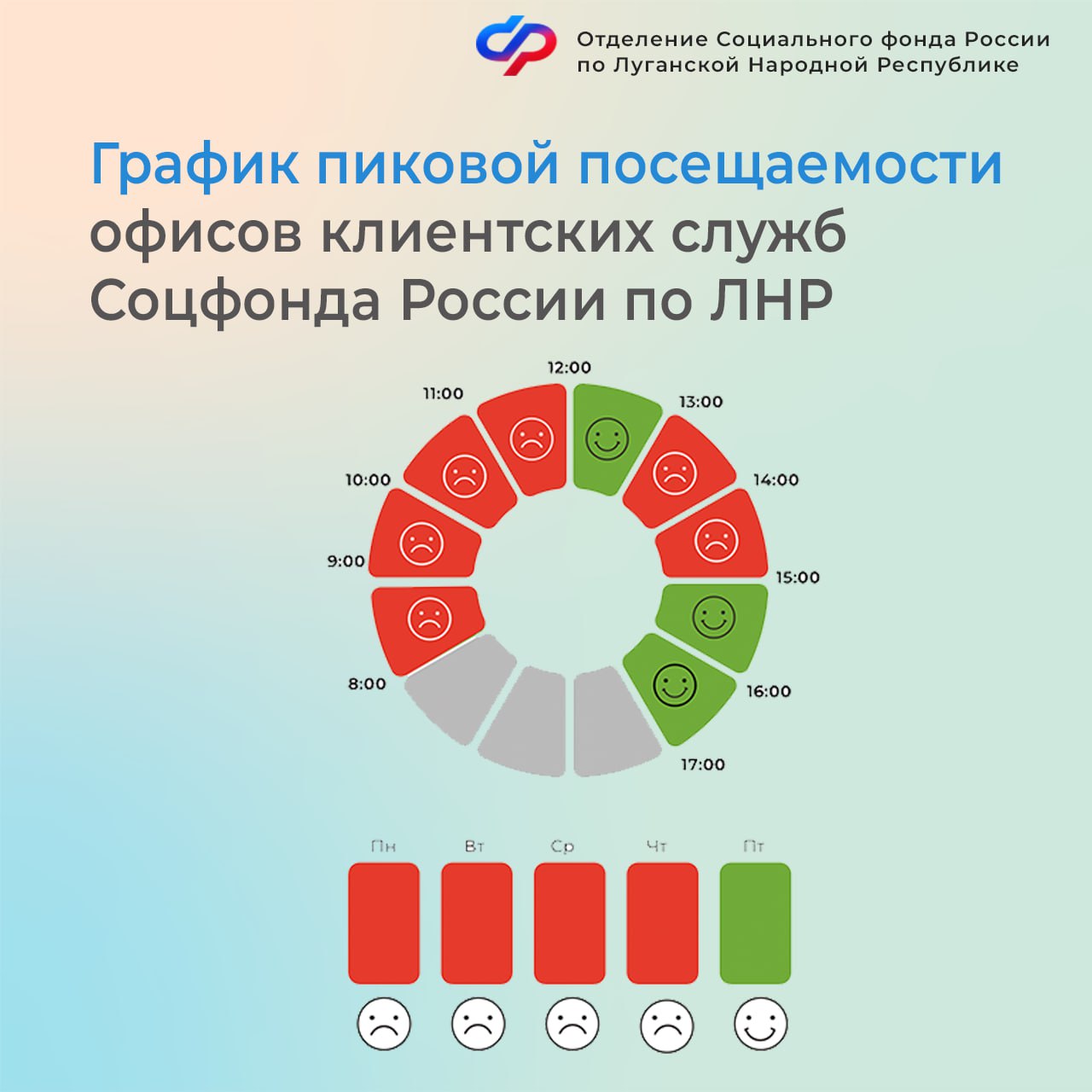 Отделение Социального фонда России по ЛНР подготовило для жителей график пиковой посещаемости офисов клиентских служб.