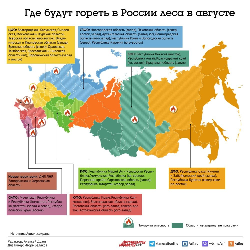 Эксперты федеральной Авиалесоохраны проинформировали об опасности лесных пожаров в России в августе.