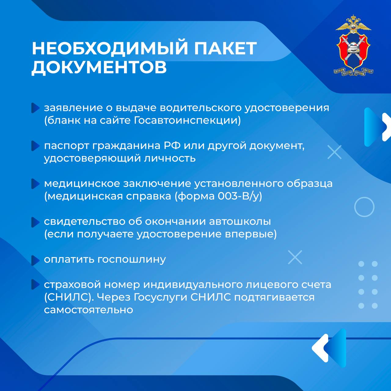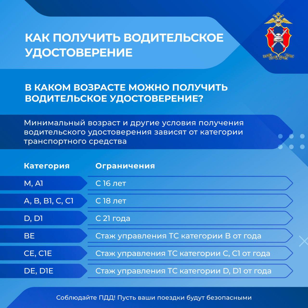 В карточках собрана самая главная информация, касающаяся водительских удостоверений: