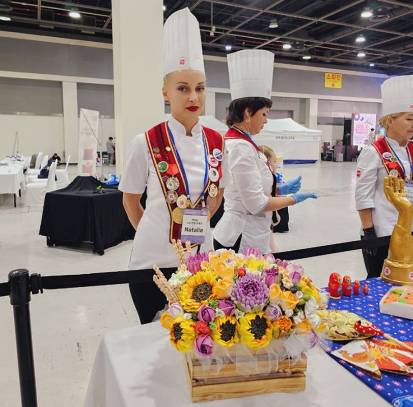 Наталья ездила на чемпионат как Международный эксперт Всемирной Федерации ресторанного спорта, а также участник. Она представляла зефирную флористику и давала мастер-класс по изготовлению цветов из зефира. О впечатлениях от этой поездки кондитер рассказала нашим читателям: