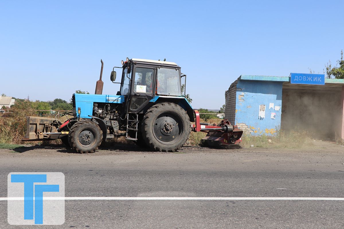 В пятницу, 6 сентября, на трассе возле поселка Должик был замечен трактор, обкашивавший бурьян, растущий вдоль дороги.