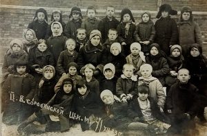 Майя Пегливанова (2-й ряд снизу, 1-я слева) с одноклассниками, 1933 г.