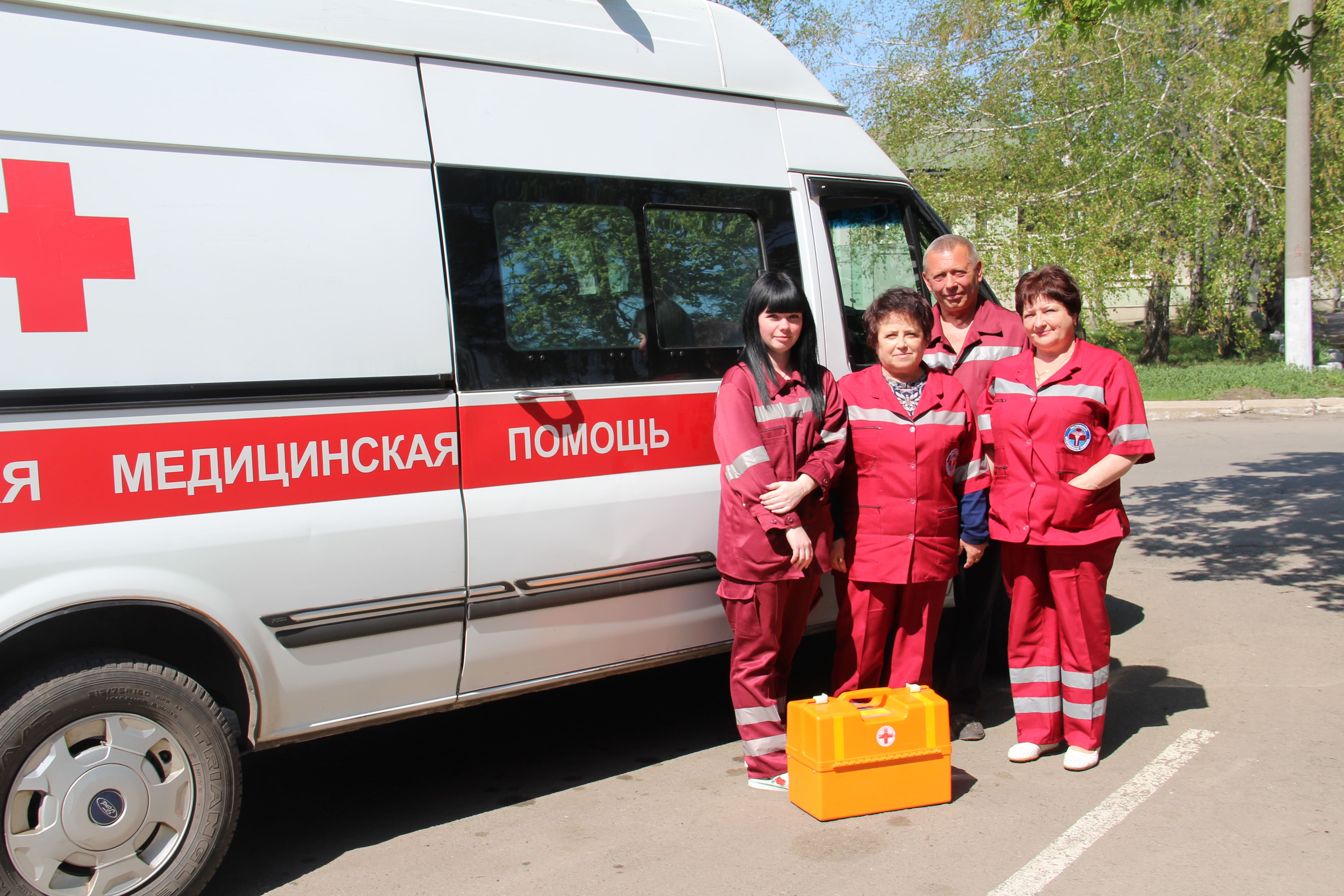 Водитель Геннадий Афанасенко, фельдшера Ирина Могилевская, Ольга Егорова и диспетчер Людмила Бабарицкая