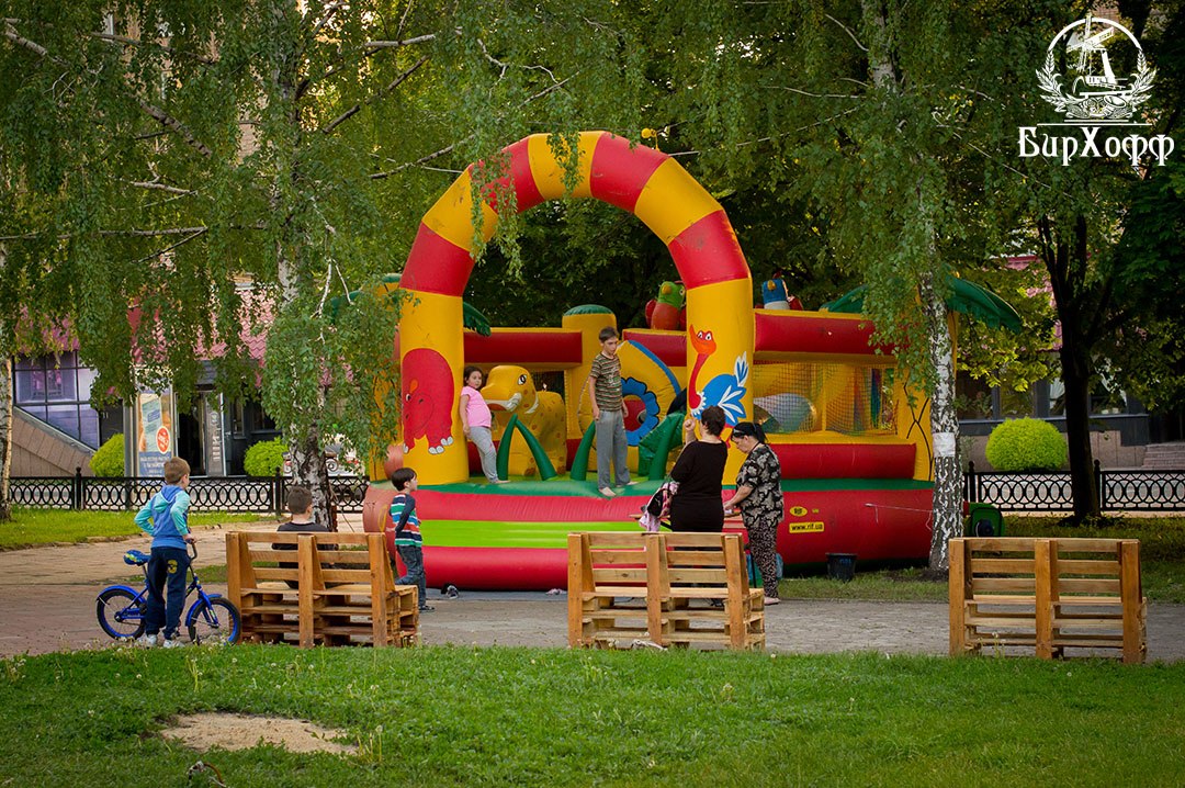 Также организаторы не забыли про детский досуг: на площадке работает огромный батут. И в то время, пока родители смогут обсудить свои дела за ужином, дети будут веселиться рядом, находясь в поле зрения.