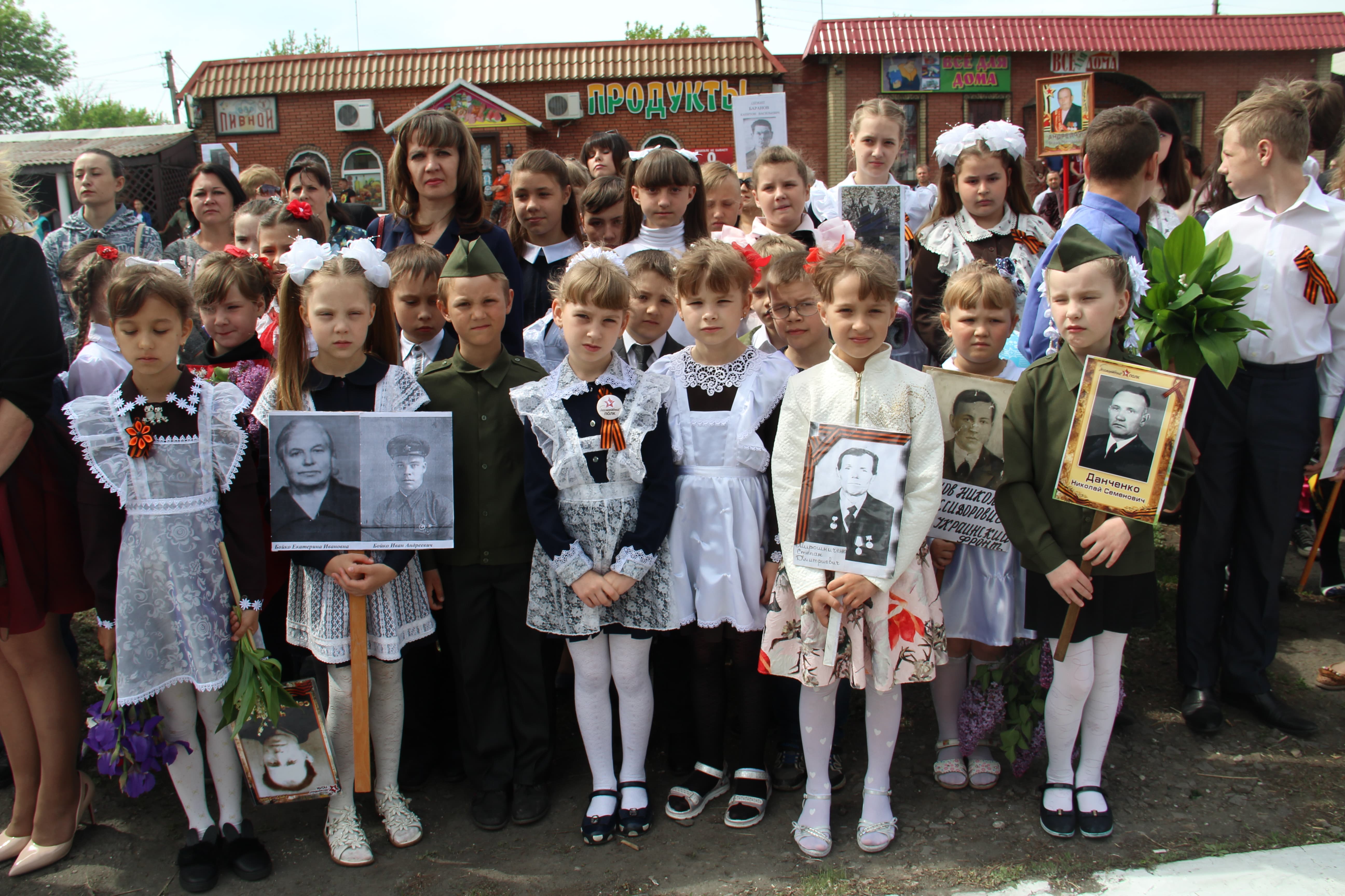 Гордо поднимая высоко вверх таблички с фотографиями родных людей, героев-победителей Великой Отечественной войны, участники акции пришли к месту празднования, на станцию Красная Могила. Возле памятника погибшим богучарам торжественно стоит почётный караул, дети цветами встречают ветеранов войны. Хорошее настроение у всех, без исключения присутствующих – улыбки, приветствия знакомых, душевная атмосфера праздника всех поколений. Звучат поздравления с трибуны, песни о войне и её героях исполняют вокальные коллективы разных возрастов. Тем временем на зелёных полянах резвится малышня. Подхожу, интересуюсь, чей портрет бережно держат в руках молодые девушки. «Это наш 14-летний дедушка, Владислав Алексеевич Никольский, годы жизни 1928-2016 гг. (на фото юнец с красивыми чертами лица, наивными глазами и пухлыми губами). Он прибавил к своему возрасту несколько лет, и с частями регулярной Армии прошёл через Польшу, Чехословакию, Австрию, дошёл до Германии.