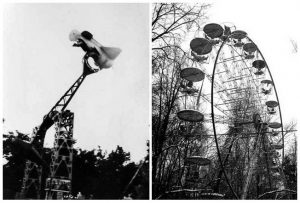 Здесь уже было прохладно, отдыхали семьи с детишками. Любимым развлечением посетителей парка были аттракционы: детские карусели, тир, качели «Лодочки», комната смеха, высокое, как мне казалось, колесо обозрения. На площадках, где они располагались, всегда было шумно и весело. Благодаря аттракционам, даже скучный зритель становится активным участником любых мероприятий, проводимых в парке. Работал в то время и аттракцион «Петля Нестерова».