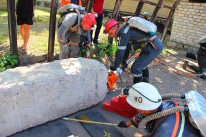 Также были продемонстрированы навыки работы со спасательным оборудованием «Холматро», при помощи которого извлекают пострадавших из-под обрушенных пород.