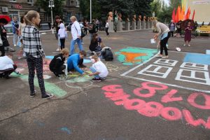 Яркая насыщенная программа митинга перешла в праздничный концерт, который завершился фейерверком и огненным шоу. А после этого жители Молодогвардейска все, от мала до велика, танцевали на дискотеке.