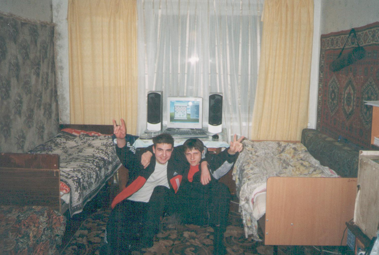 Жили в комнате все пять лет втроем, первые два года никуда не ходили, было просто интересно друг с другом. Из-за нарушения режима, один раз были наказаны комендантом – пришлось подметать лестничные пролеты. С девчонками дружим до сих пор, поддерживая связь.