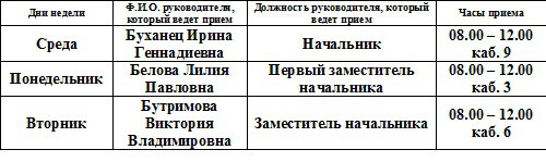 График личного приема граждан руководством управления Пенсионного Фонда ЛНР в Перевальском районе