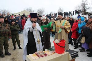 Обряд водоосвящения провел Благочинный Краснодонского церковного округа протоиерей Димитрий Притула. Поздравив собравшихся с Великим праздником Богоявления, щедро окропил всех святой водой. После чего самые отважные краснодонцы окунались в ледяную купель. Открыли купания представители сильного пола. Некоторые из них делали это с детьми. Потом к проруби пришли дамы.
