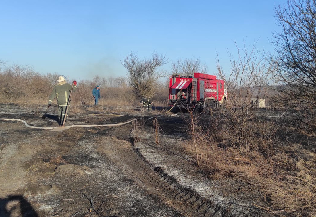 После этого пожара спасатели поехали тушить сухую траву и кустарник в район улицы Заречная и шахты «Харьковская», где огнем было охвачено более двух гектаров сухой травы и кустарника.