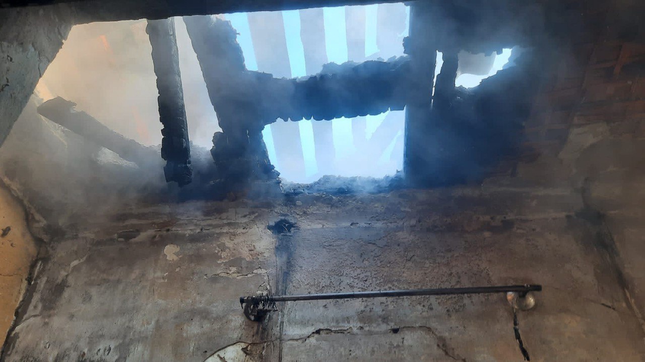 В поселке Донецкий в результате артобстрела со стороны ВСУ сгорел дом барачного типа.