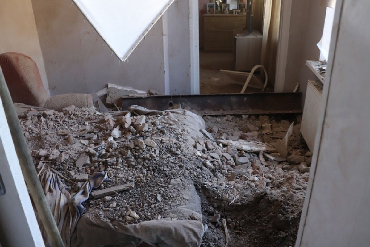 В некоторых многоквартирных и частных жилых домах выбиты стекла и повреждены крыши. Один дом разрушен прямым попаданием.