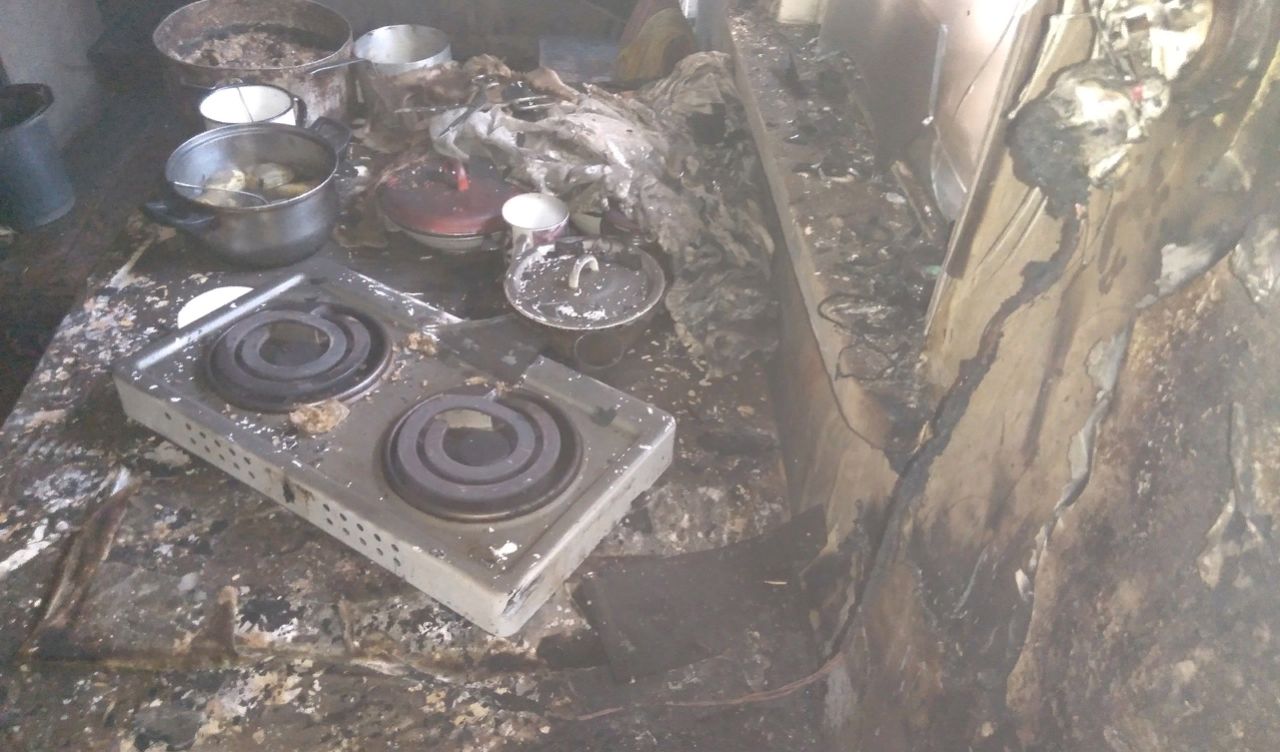 На кухне пожарные заметили тлеющий деревянный пол, на который упал провод с электропечи, и приступили к тушению. Вскоре пожар был повержен, сгорел пол и частично холодильник и два ковра. Вероятной причиной возгорания назвали неисправность электробытовых приборов.