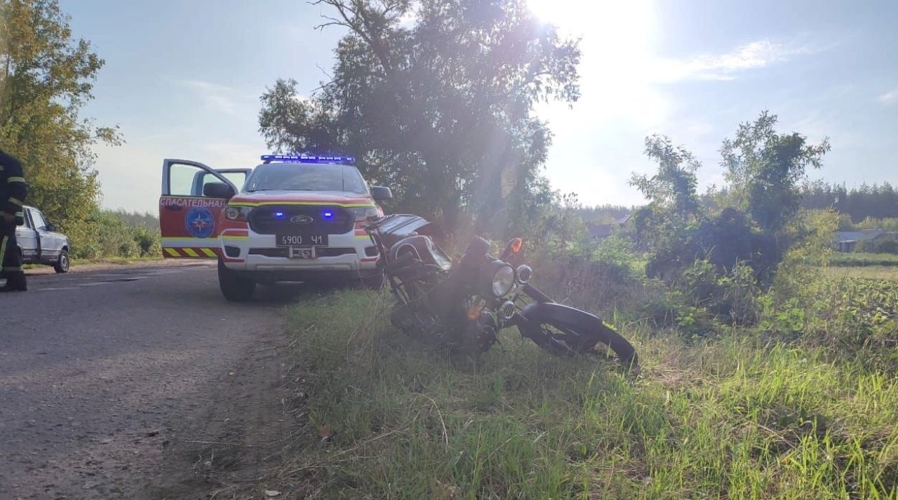 Когда спасатели вместе с фельдшером прибыли на место происшествия, выяснилось, что водители авто и мотоцикла не смогли справиться с управлением и столкнулись. Пострадавшим оказали медпомощь, в то время как спасатели искали утечку горючих материалов.