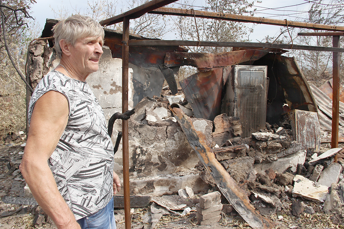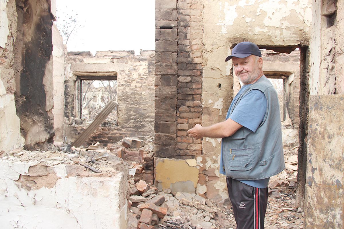 А вот и Валерий Леонидович, он получил сильные ожоги рук, вместе с ним мы доехали к его дому. Вернее, к тому, что от него осталось.