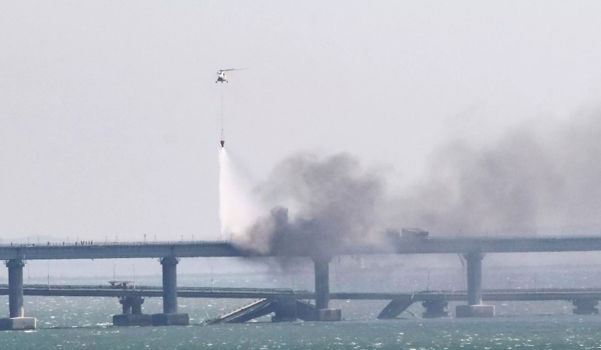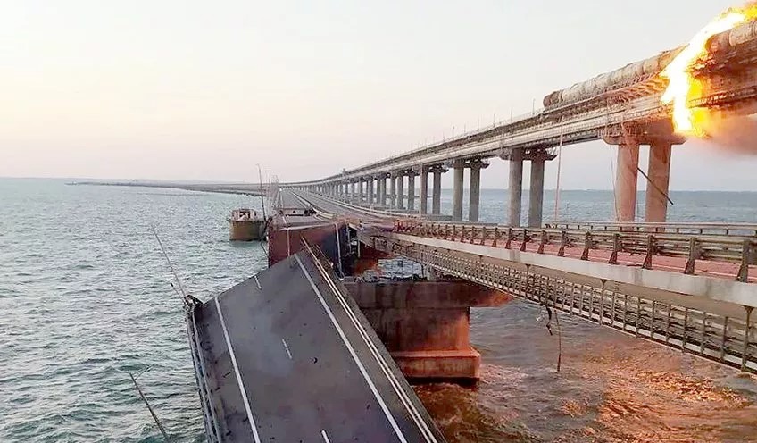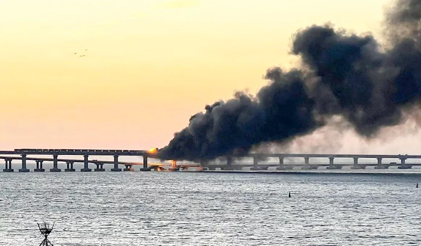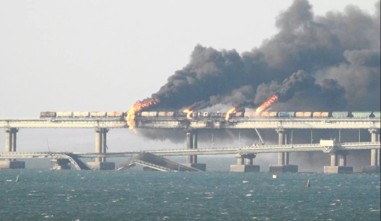 Утром 8 октября на Крымском мосту подорвали грузовой автомобиль, что привело к возгоранию семи топливных цистерн ж/д состава.