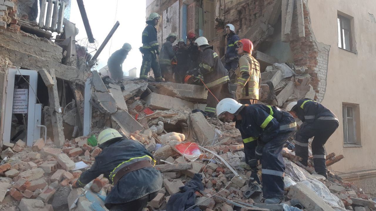 В жилом пятиэтажном доме обрушились три этажа. Спасатели эвакуировали пять человек из-под завалов, ещё один человек находится под обрушениями.