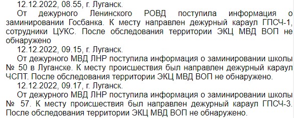 За прошедшие сутки от неизвестных правоохранителям поступила информация о якобы минировании двух школ и здания Госбанка в столице ЛНР.