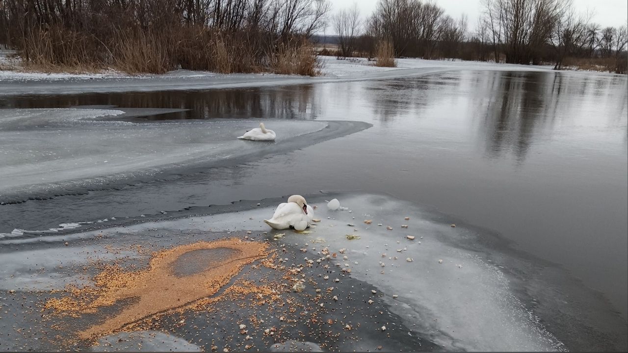 Сотрудники МЧС освободили лебедя, вмёрзшего в лёд на реке Айдар
