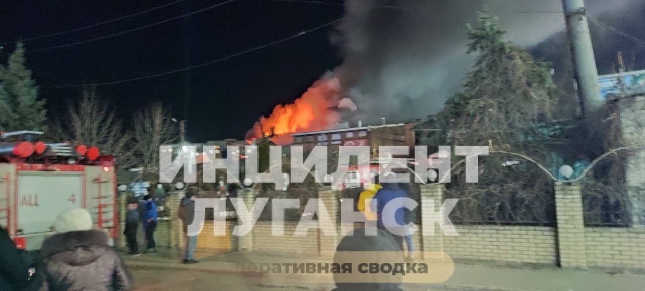 В Луганске на квартале Мирный горит ресторан «Пегас».