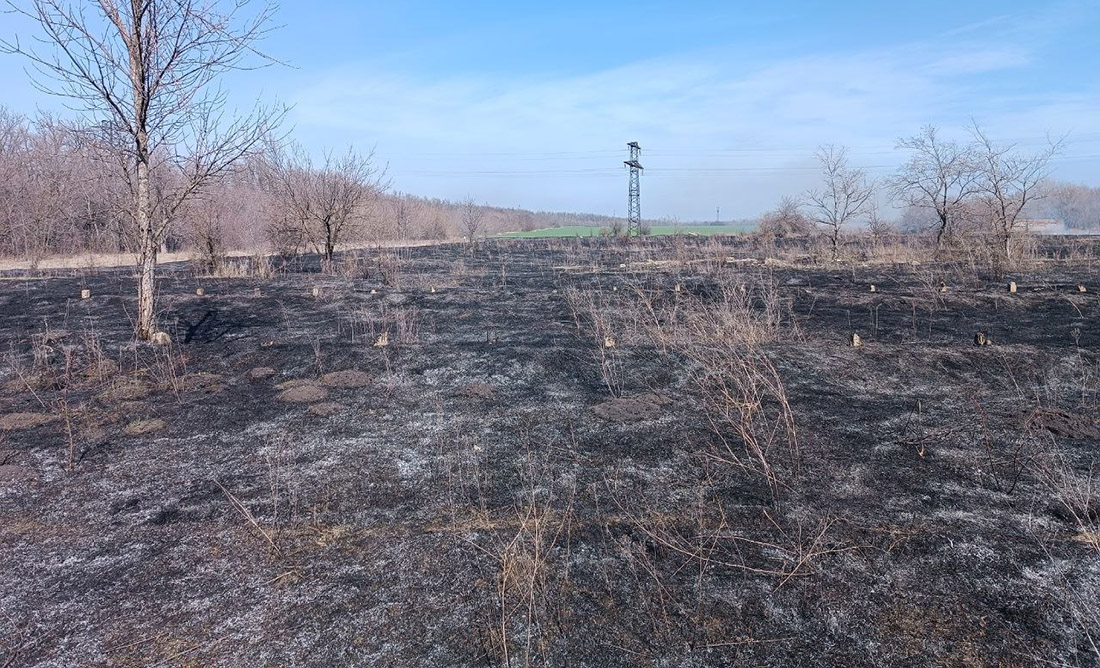 25 марта горела сухая трава в районе шахты им. Я.М. Свердлова.