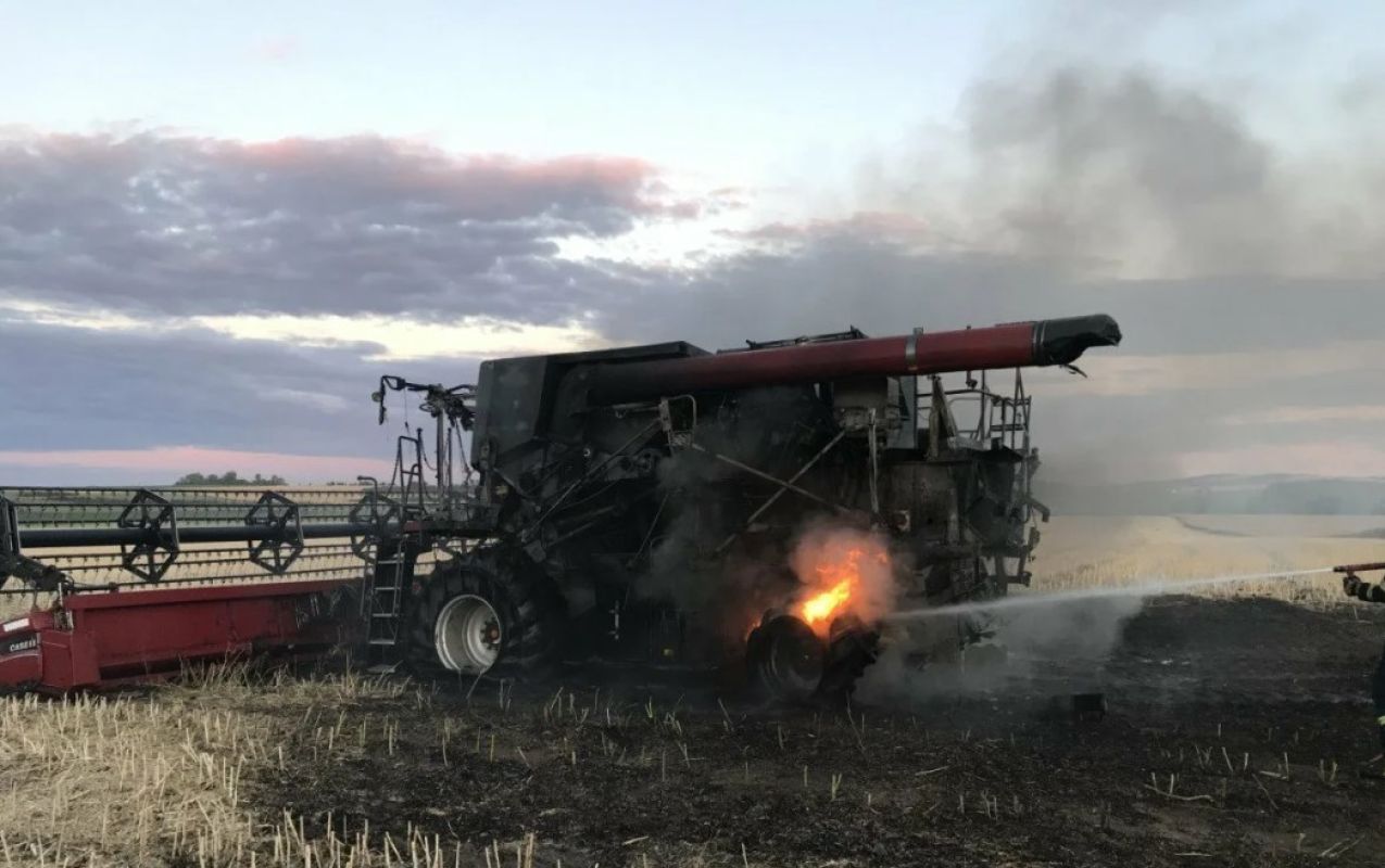 В Краснодонском районе во время уборки пшеницы на поле подорвался комбайн
