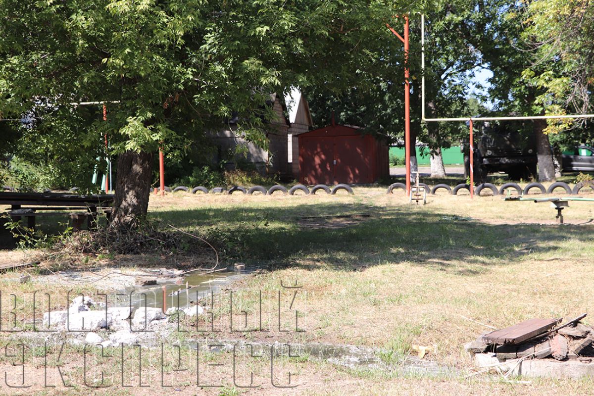 Мы прошли вдоль домов и целого ряда канализационных колодцев, прикрытых, чем придется и вышли к детской площадке, образца 1980 года. Детей там не было в это время, но озерцо нечистот так «украшало» и ароматизировало пейзаж, что представить трудно, кто вообще может находиться на этой территории. Напомню, в поселке не было воды. Иначе масштабы озерца значительно увеличились бы, а фекальная река, скорее всего, потекла привычным руслом к центральной улице Победы.