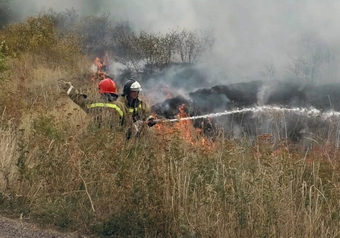 На следующий день, 5 октября, пожар произошел в селе Николаевке. На открытой территории выгорели сухая трава и кустарник.