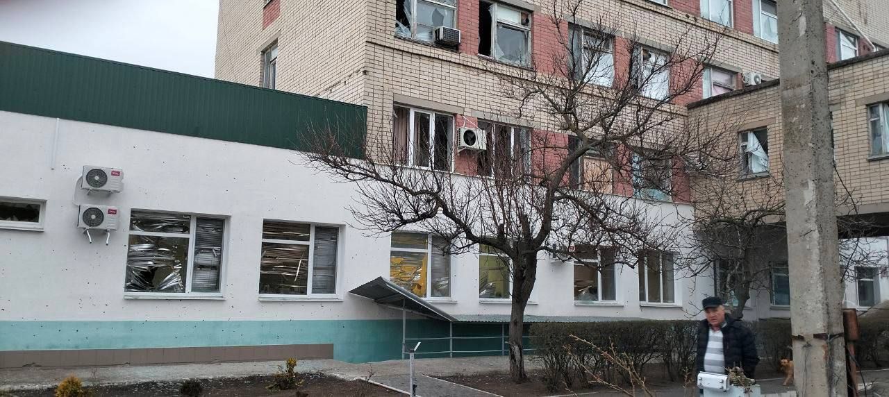В результате атаки беспилотников повреждено остекление приемного и родильного отделения Каховской центральной районной больницы. Пострадавших среди пациентов и медицинских работников нет.