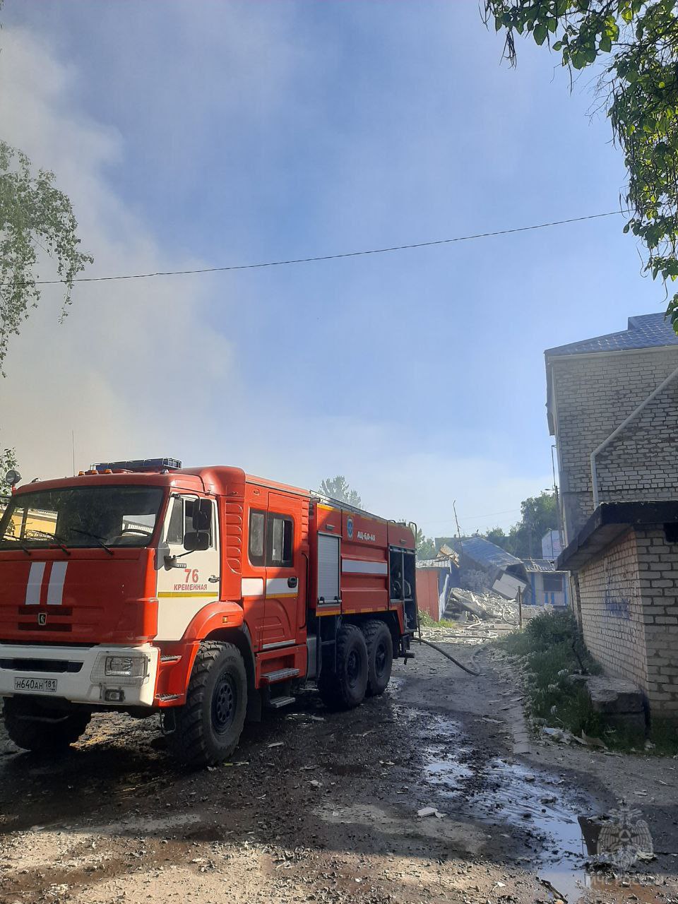 На место происшествия оперативно выехали силы и средства 76 пожарно-спасательной части (ПСЧ). Тушение осложнялось угрозой повторного обстрела и присутствием БПЛА в воздухе.