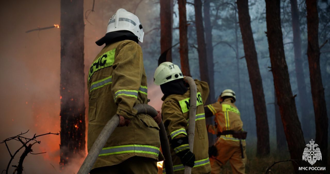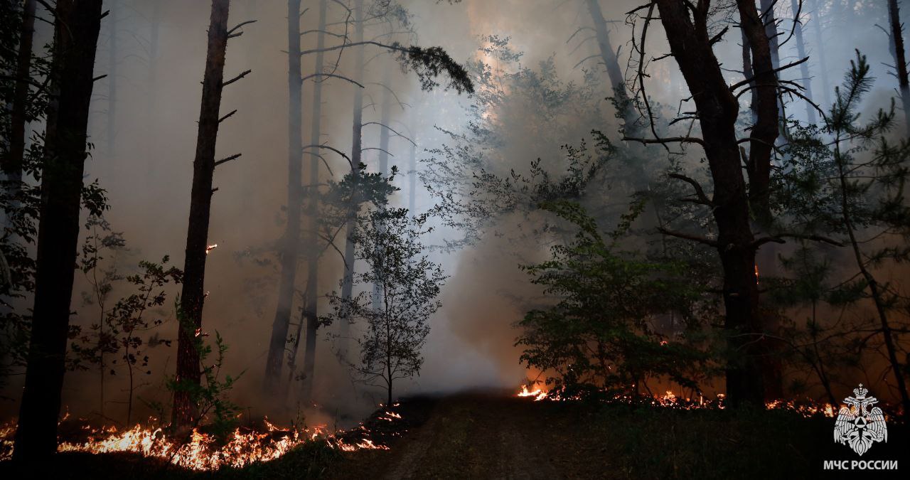 Спасатели МЧС России ликвидируют лесной пожар в Станично-Луганском муниципальном округе.