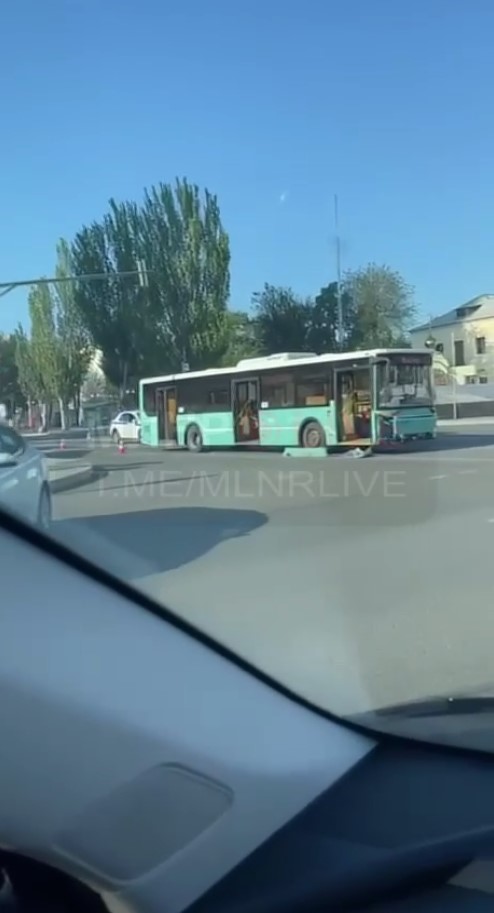 Авария произошла на перекрёстке улиц Советская-Оборонная. На кадрах, которые опубликованы в Телеграм-канале "Известия ЛНР/ДНР", видно, что у автобуса и легковушки остались вмятины после "встречи". О пострадавших информация не поступала.