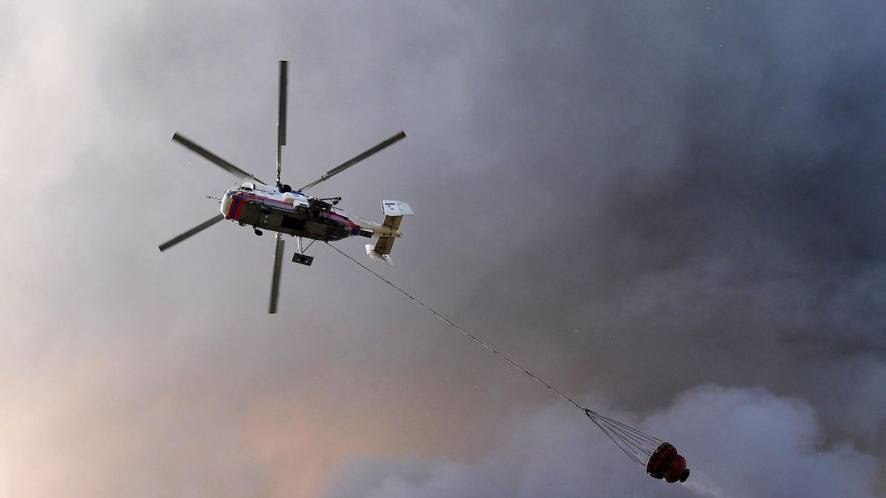 Указывается, что с 6 часов утра на данном направлении работают два вертолета. Пожарным уже удалось отодвинуть огонь от населённых пунктов, а сейчас тушат возгорание в лесу.