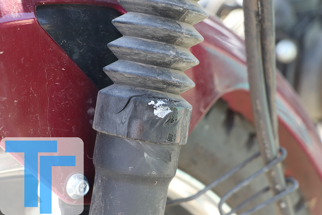 Наталья Юрьевна показала журналисту место, где предположительно случилось ДТП, а также мопед ее брата, который хранится у соседа, Виктора Ивановича. При внимательном осмотре транспортного средства на его левой стороне были обнаружены царапины, оставшиеся, судя по всему, после падения на асфальт. Левое зеркало треснуло пополам, а на амортизаторе переднего колеса с левой стороны предположительно виден след от удара, из-за которого, скорее всего, треснул пыльник, а в месте повреждения застряла краска темного цвета.